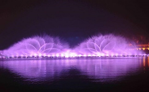 音樂噴泉,顧名思義就是指噴泉的水型根據播放音樂的旋律和節拍有規律地進行變化,同時輔以燈光、激光或其它介質的變化